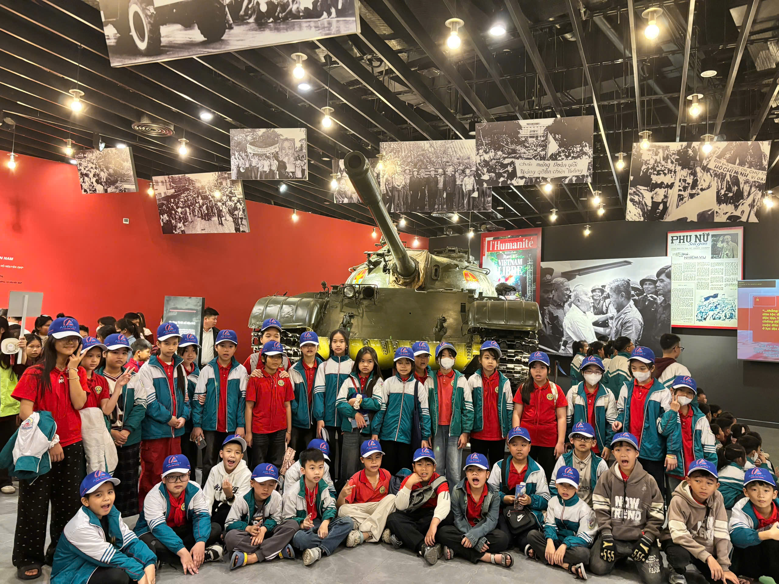 Chuyến đi bắt đầu bằng hành trình khám phá tại Bảo tàng Lịch sử Quân sự Việt Nam. Tại đây, các em không chỉ được chiêm ngưỡng những hiện vật lịch sử vô cùng quý giá, mà còn được lắng nghe những câu chuyện hào hùng về quá trình đấu tranh dựng nước và giữ nước của dân tộc. Từ những vũ khí thô sơ nhưng đầy uy lực, đến những hình ảnh tái hiện sống động các trận đánh lịch sử, các em đã được mở rộng hiểu biết về lịch sử quân sự Việt Nam, bồi dưỡng lòng yêu nước và niềm tự hào dân tộc. Đặc biệt, các em đã có cơ hội tìm hiểu sâu sắc hơn về truyền thống anh hùng, lòng dũng cảm và tinh thần yêu nước của các thế hệ cha anh đi trước, từ đó thêm trân trọng giá trị của hòa bình.