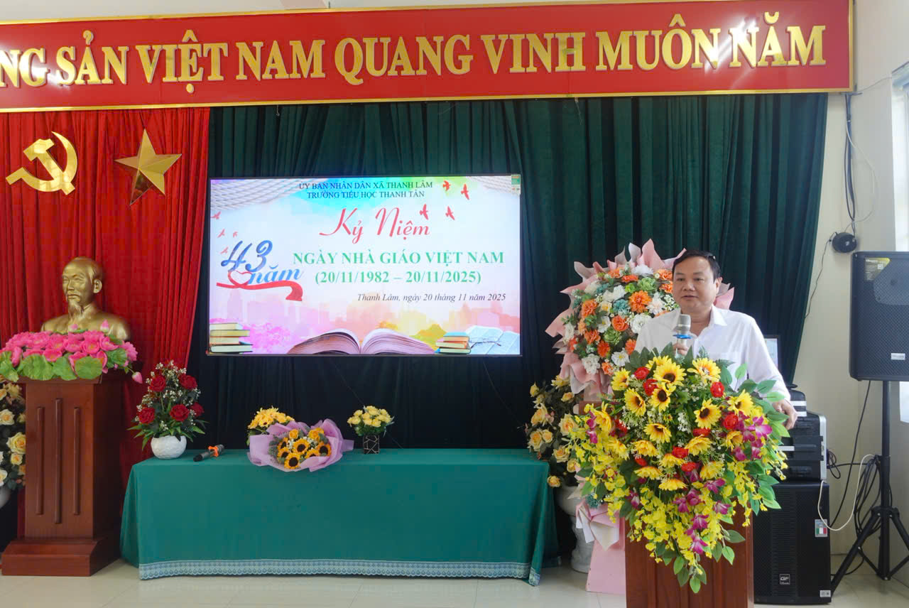 Xin trân trọng cảm ơn sự quan tâm, động viên của đồng chí Đinh Viết Cường PBT ,Chủ tịch UBND và các cấp lãnh đạo, các ban ngành đoàn thể xã Thanh Lâm , Ban đại diện cha mẹ học sinh. Đó cũng là động lực để BLĐ, các thầy cô giáo trường Tiểu học Thanh Tân sẽ mãi vững tay chèo tiếp tục chèo lái con thuyền tri thức đưa các thế hệ học sinh nhà trường cập bến bờ vinh quang.
